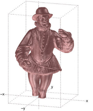 Figure shows a printed detailed Shakespearean figure placed in a cartesion coordinate system.